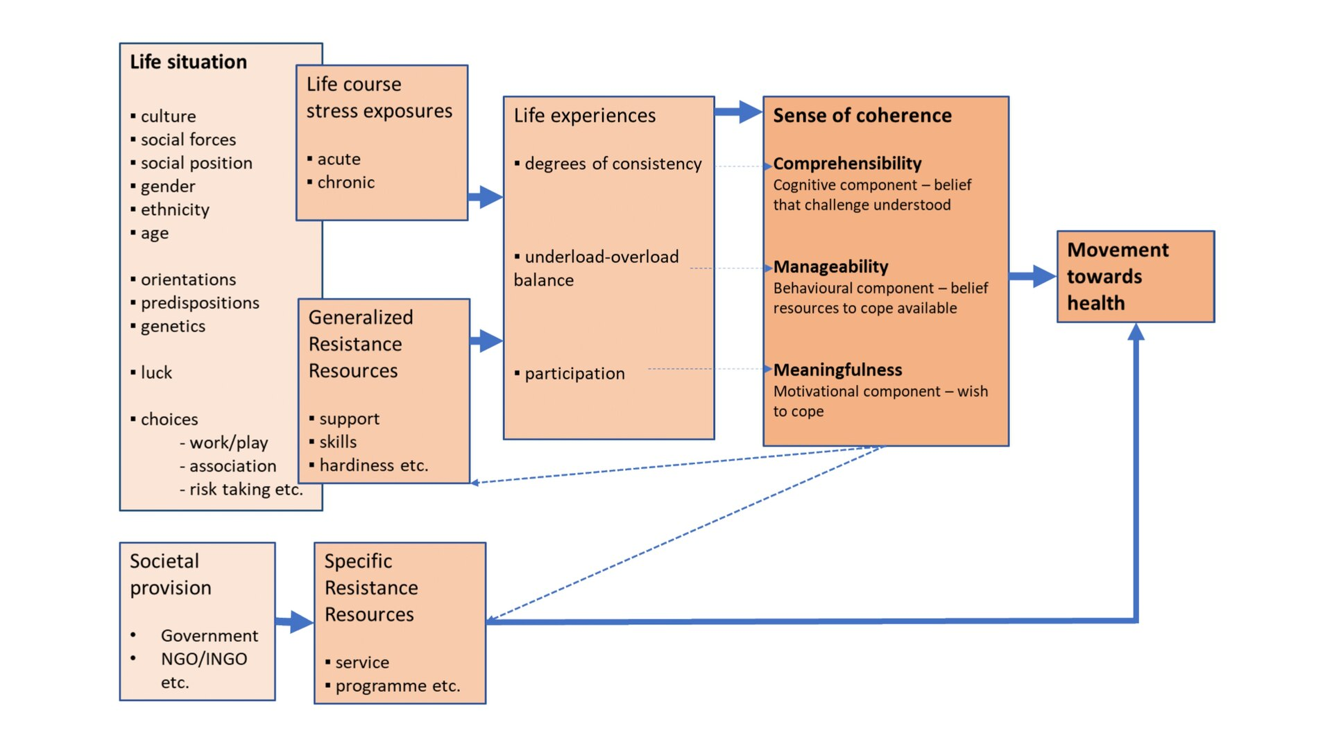 Ключевым понятием в этой концепции является "чувство связности", - когерентность, - (sense of coherence), которое включает: