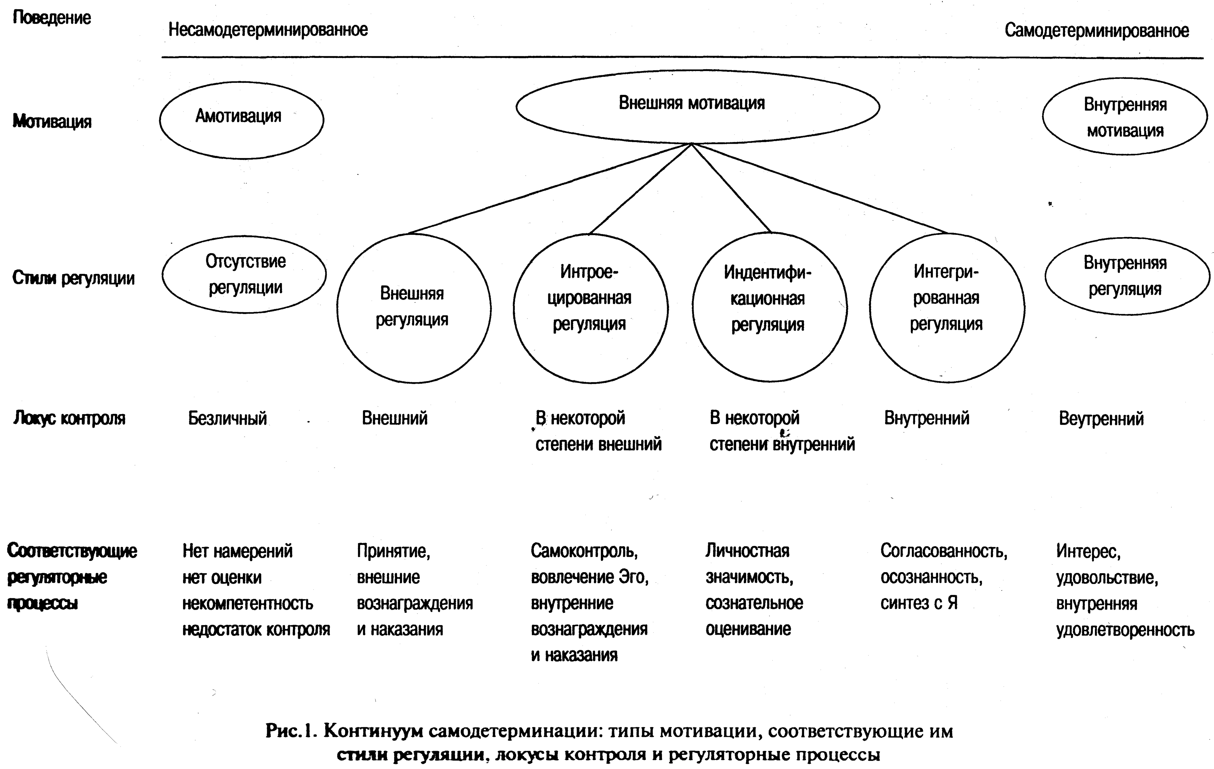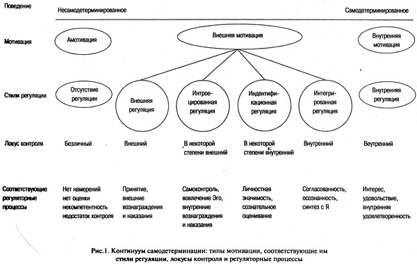 Изменение способа регуляции поведения идет в направлении от полной определяемости внешними силами к внутренней автономной саморегуляции. Стадии процесса: внешняя регуляция, интроекция, идентификация, интеграция.