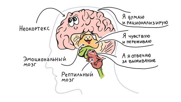 Более древние части мозга контролируют базовые функции – дыхание, простые поведенческие реакции, а неокортекс отвечает за речь, мышление, внимание и память.